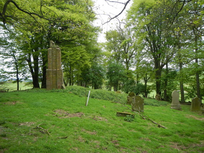 No more than faint traces of the church of Navar survive in the graveyard at NO 52996 67537. Apart from a number of gravestones, the only structure is a masonry pier capped by a collapsing bellcote. There is said to have been an inscription on it that stated ‘This bell-house was built in the year 1773’, with a list of those who had subscribed to its construction.(4) It appears to have had no connection with the church, which had been abandoned a half-century earlier.